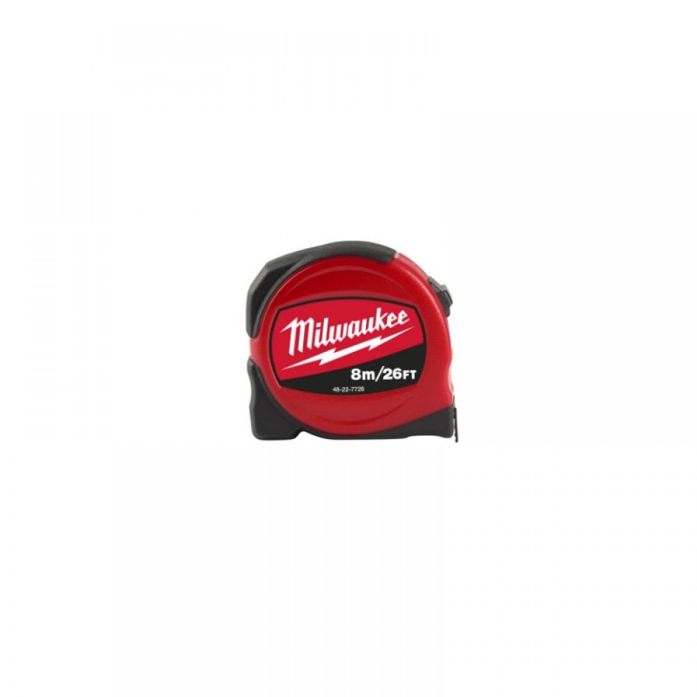 Рулетка SLIM 8м-26фт/ширина 25мм Компактний та покращений ергономічний дизайн. Нейлонове покриття захищає полотно від пилу, бруду та води. Корпус з ABS пластику покритий гумою для удароміцності та зручності хвату. 4 точки посилення корпусу. Плоска основа для горизонтальної стійкості та задня частина для спрощення вертикального виміру. Кліпса на ремінь. Клас точності ІІ. Комплект поставки: Рулетка Milwaukee COМPACT Slim 8м-26фт/ширина 25 мм - 1 шт Довжина (м) 8 Кількість (шт) 1 Ширина (мм) 25 Магніт немає