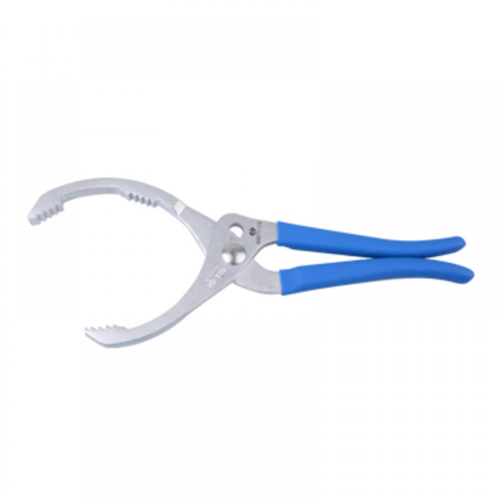 Знімач масляного фільтра затискного King Tony 85-115 мм (9AE71-115): Знімач хомутів King Tony 9AE71-115 - спеціальний інструмент, призначений для затягування та демонтажу масляних фільтрів та зливних пробок масляного картера автомобіля. Кліщі 9AE71-115 дозволять значно полегшити та прискорити роботу з масляних фільтрів у діаметрі від 85 до 125 мм. Захоплення мають робочу частину спеціальної форми, що дозволяє забезпечити міцну фіксацію демонтажного фільтра, не боячись зісковзування чи пошкодження деталі у процесі демонтажу чи встановлення. Конструкція оснащена шарнірним механізмом для більш плавного та міцного затиску. Корпус виконаний із міцної інструментальної сталі, високої якості, поверхня якого хромована, що додасть антикорозійної стійкості та забезпечить тривалий термін служби інструменту. Для міцності захоплення рукоятки виконані з прогумованого пропілену. Даний тип інструменту знайшов своє застосування в машинобудуванні, автомайстернях та СТО.