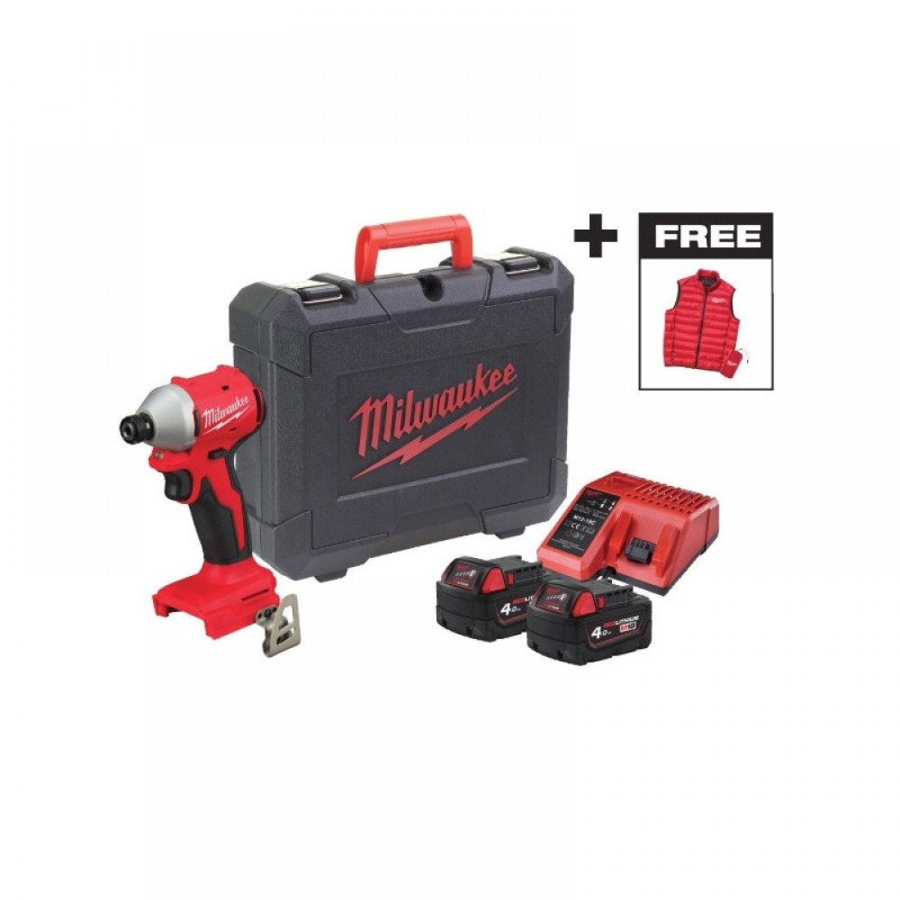 Шуруповерт ударний акумуляторний безщітковий MILWAUKEE M18 BLIDRCMC-402C (190Нм) (+ заряд.пристрій, 2 акум., HD кейс) + жилетка