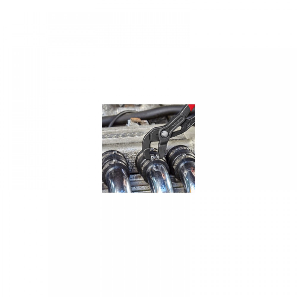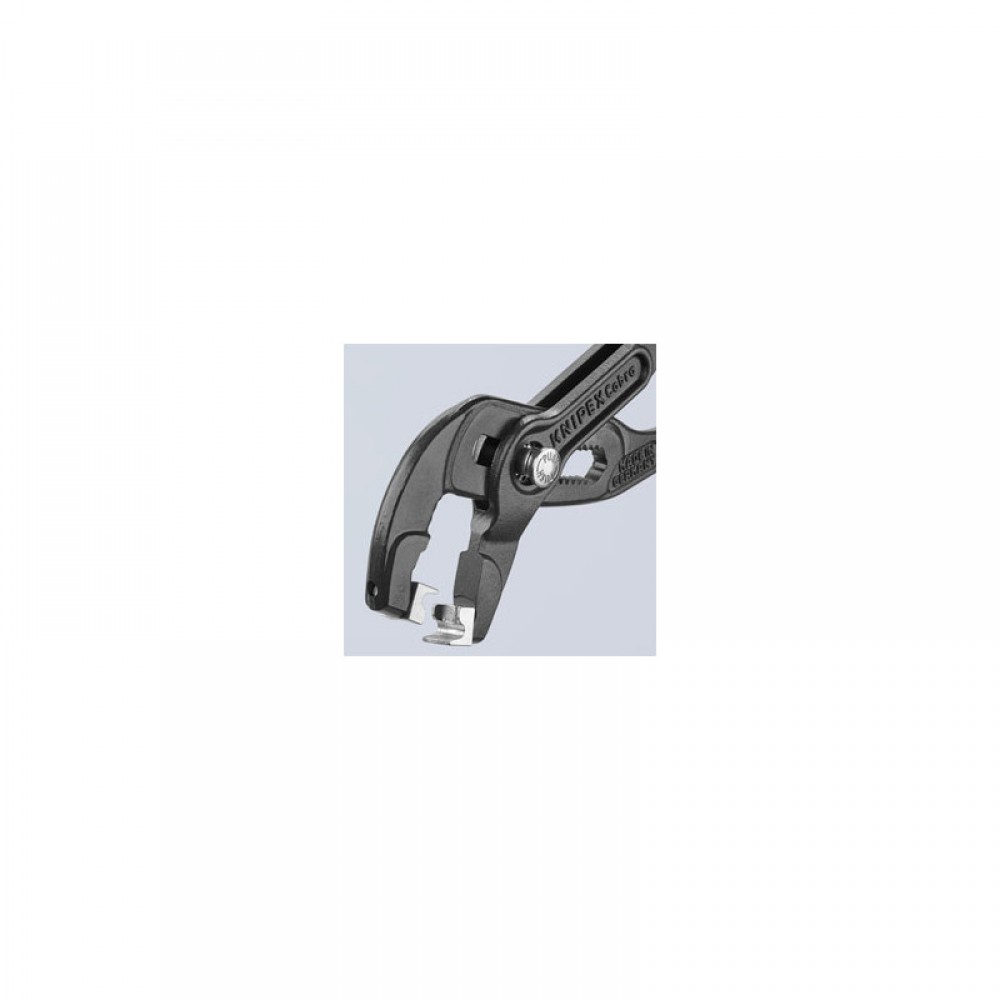 Щипці для пружинних хомутів KNIPEX 85 51 250 C Для монтажу та демонтажу хомутів із засувкою поворотні вставки-захоплення надійно тримають хомут у будь-якому положенні хороше передавальне число важелів дозволяє розтискати та монтувати хомути легко та без особливих зусиль. зручно працювати з хомутами, наприклад, на паливних шлангах, вакуумних лініях та всмоктувальних штуцерах додаткова функція: дбайливе від'єднання шлангів за допомогою захопленого зіва з насічкою Витягнута вузька головка, поворотні захвати: ідеальний інструмент для роботи у стиснених умовах Хромованадієва сталь, кована, загартована в маслі