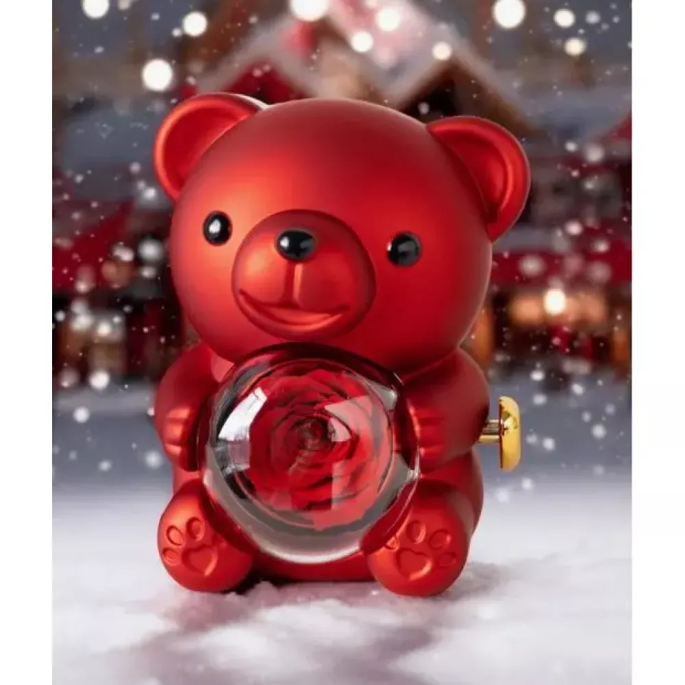 Скринька-ведмідь, що обертається, з трояндою в колбі