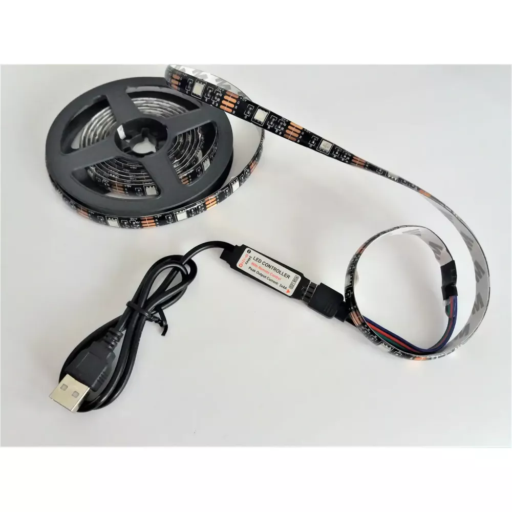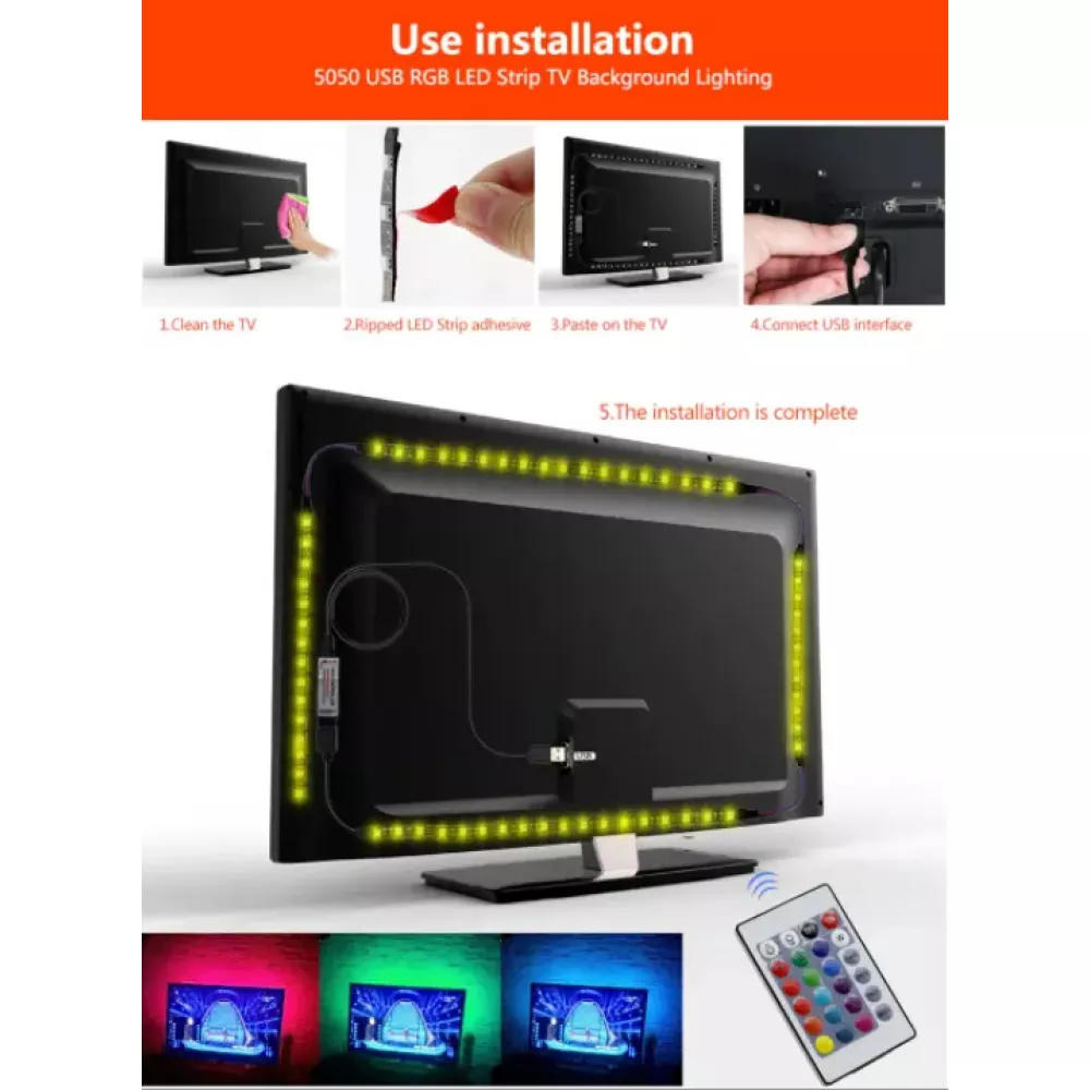 Стрічка світлодіодна RGB 5050 2м з пультом для підсвічування телевізора, монітора, меблів від USB