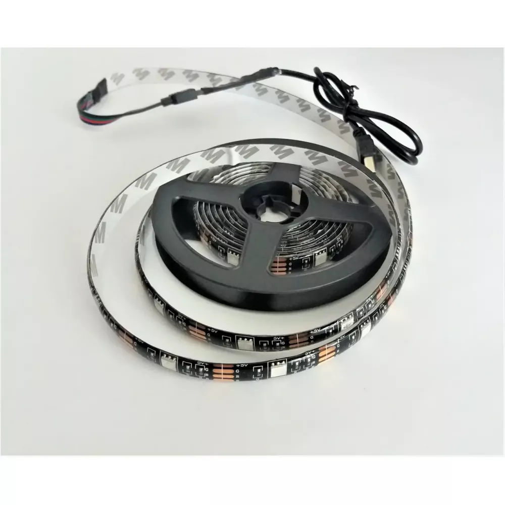 USB Стрічка світлодіодна RGB 5050 2м для підсвічування телевізора, монітора, системного блоку, будь-якої іншої плоскої поверхні з шириною від 0,8 см: дзеркало, акваріум, меблі, будь-який інтер'єр. Стрічка вологостійка, у силіконовому покритті.