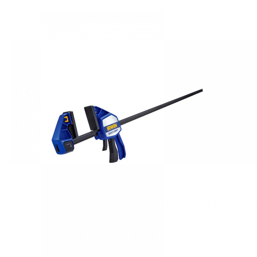 Струбцина 1250 мм QUICK-GRIP XP IRWIN 10505947 Струбцина Quick-Grip XP - перша у світі струбцина із застосуванням штангового затиску для роботи однією рукою 2017 рік – новий дизайн, нові можливості! Призначена для робіт з клею з силою стиску до 272 кг. Сила затиску в 3 рази більша, ніж у аналогів. Кнопка QUICK-CHANGE забезпечує легке вилучення губок для встановлення аксесуарів або їх перетворення на розподільник Плавний розтискний механізм забезпечує безпеку під час роботи Широкі накладки забезпечують рівномірний розподіл притискного зусилля. Можуть бути зняті для повного контакту з поворотними губками для боротьби з вигином при екстремальному тиску та відповідності неправильним формам Ніжка, що регулюється, забезпечує додаткову підтримку, дозволяючи фіксатору сидіти вертикально на столі або робочій поверхні.