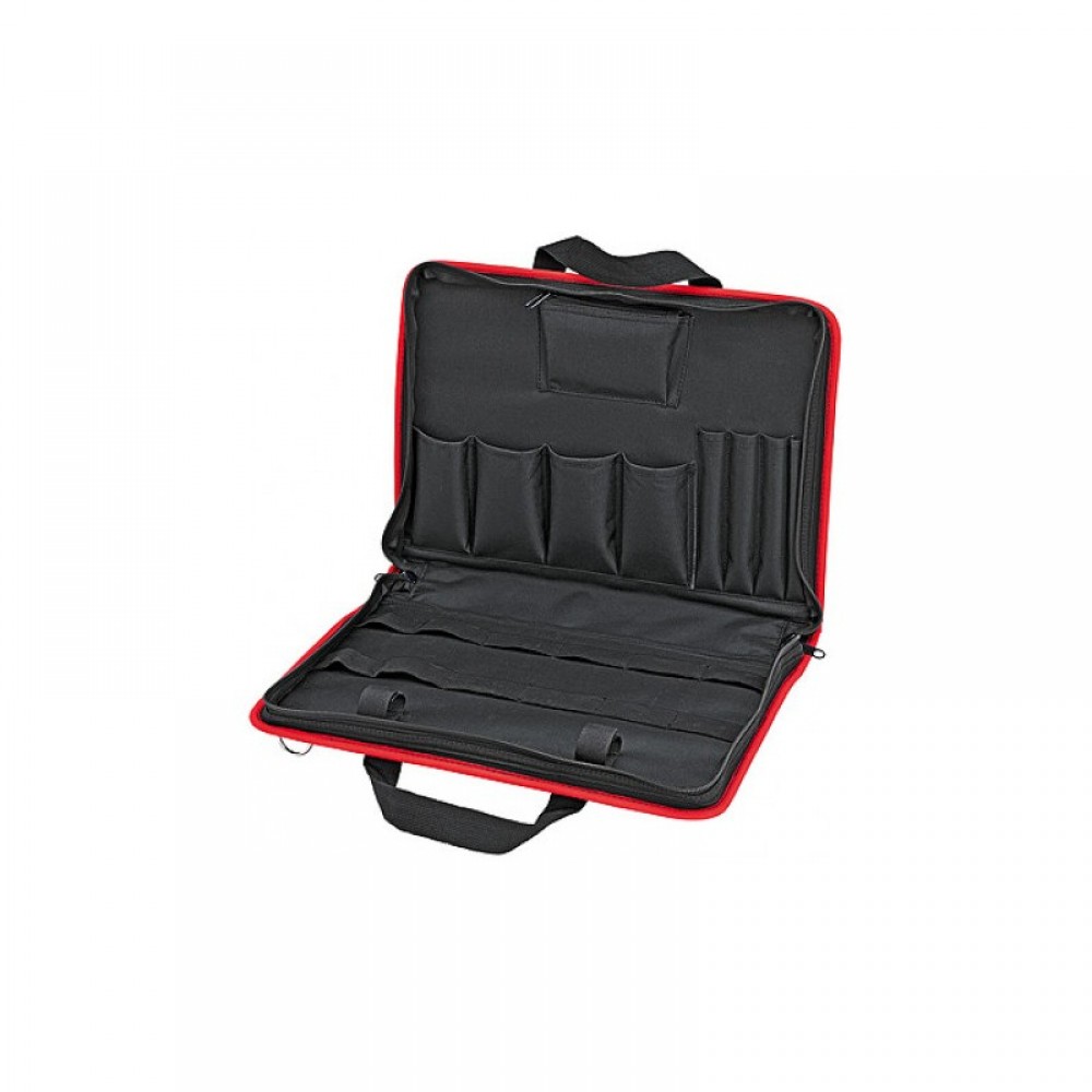 Сумка для інструментів KNIPEX порожня, 00 21 11 LE Компактна інструментальна сумка для сервісних робіт вміщається у валізу KNIPEX BIG Twin 00 21 40 LE / 00 21 41 LE та інші популярні валізи з 8 карманами та 7 петлями для інструментів витягаюча петля для кріплення на візку Компактна інструментальна сумка для сервісних робіт із зносостійкого поліестеру, із замком на молнии