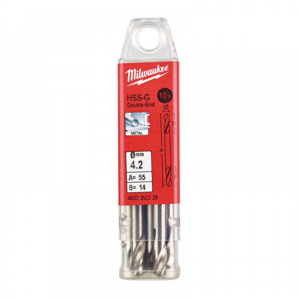 Свердло по металу HSS-G MILWAUKEE, DIN 1412 C, Ø4,2х55х14мм, двостороннє, (10шт)