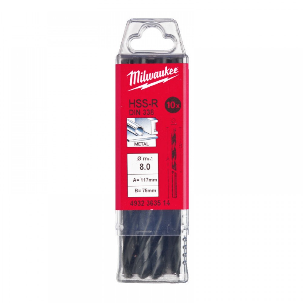 Свердло по металу HSS-R MILWAUKEE, DIN338, Ø8,0х117х75мм, (10шт)
