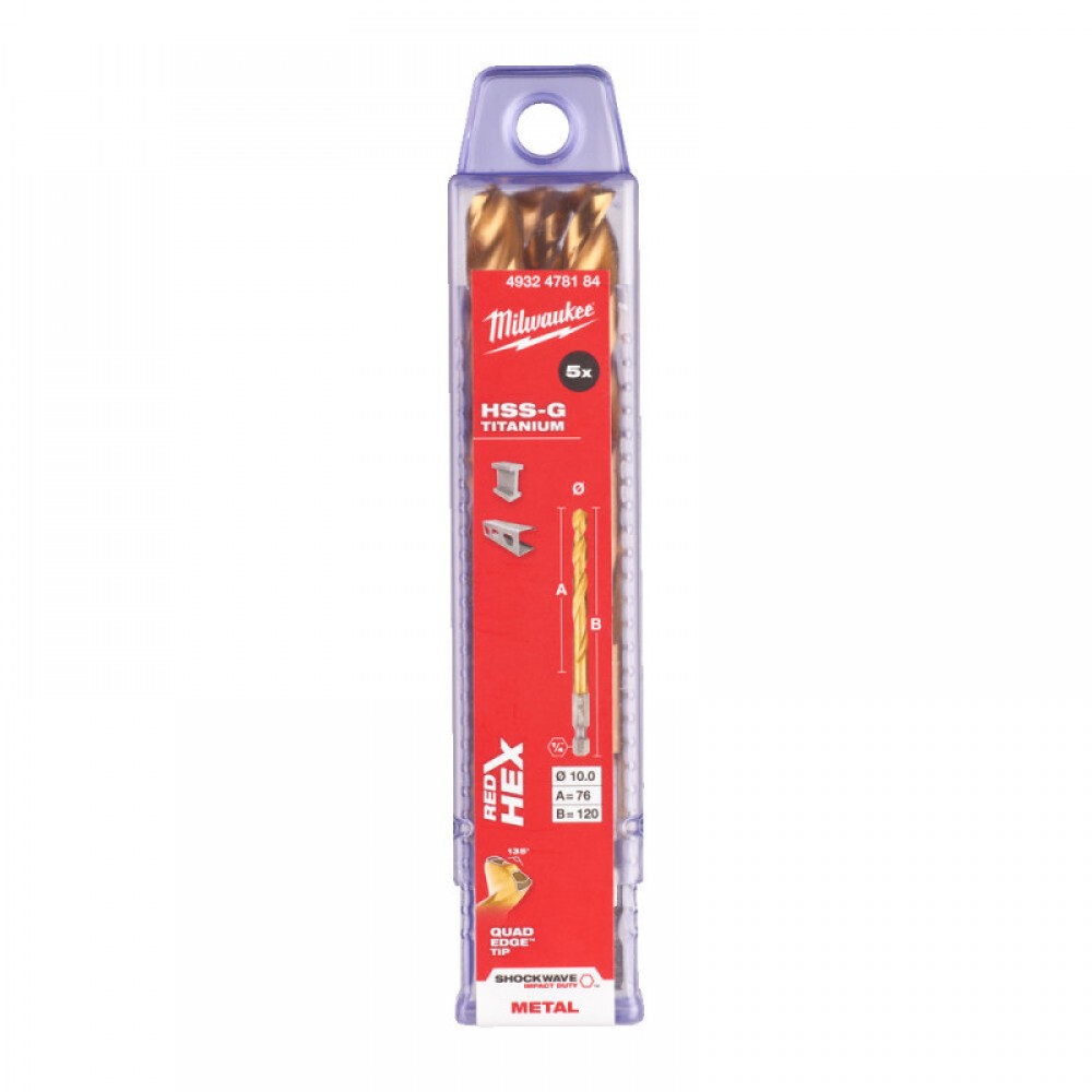 Свердло по металу RedHEX SHOCKWAVE™ HSS-TiN MILWAUKEE, Ø10,0х120х76мм, (5шт)