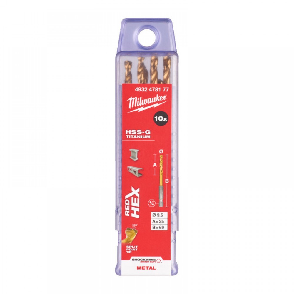 Свердло по металу RedHEX SHOCKWAVE™ HSS-TiN MILWAUKEE, Ø3,5х69х25мм, (10шт)