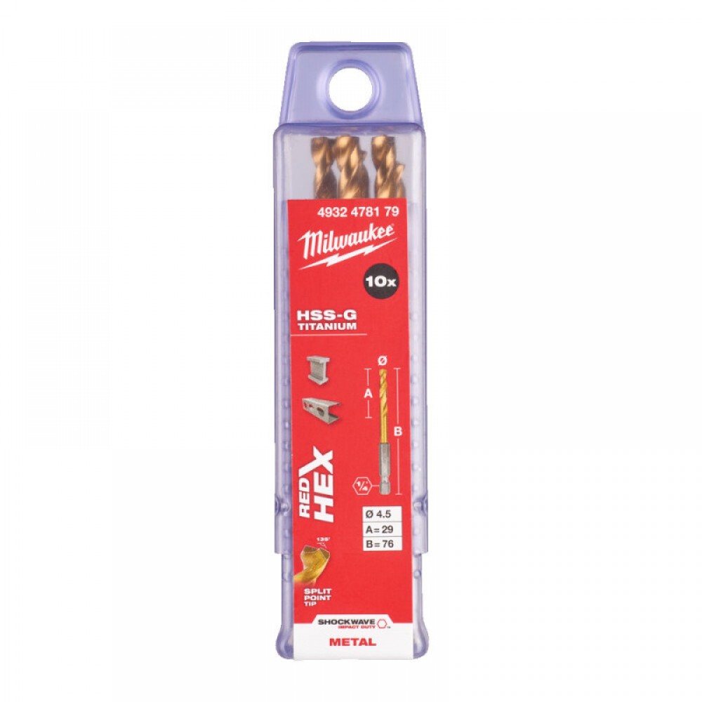 Свердло по металу RedHEX SHOCKWAVE™ HSS-TiN MILWAUKEE, Ø4,5х76х29мм, (10шт)