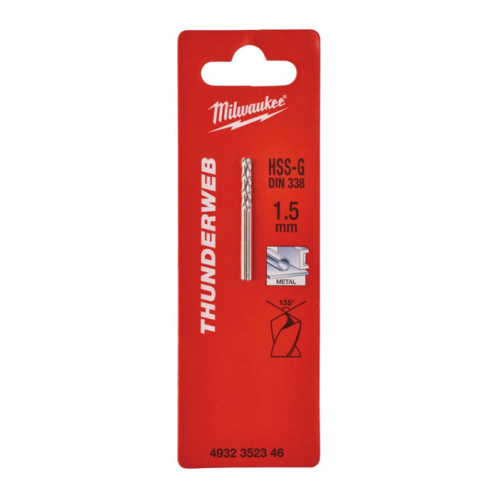 Свердло по металу THUNDERWEB HSS-G MILWAUKEE, DIN338, Ø1,5x40х18мм, (2шт)