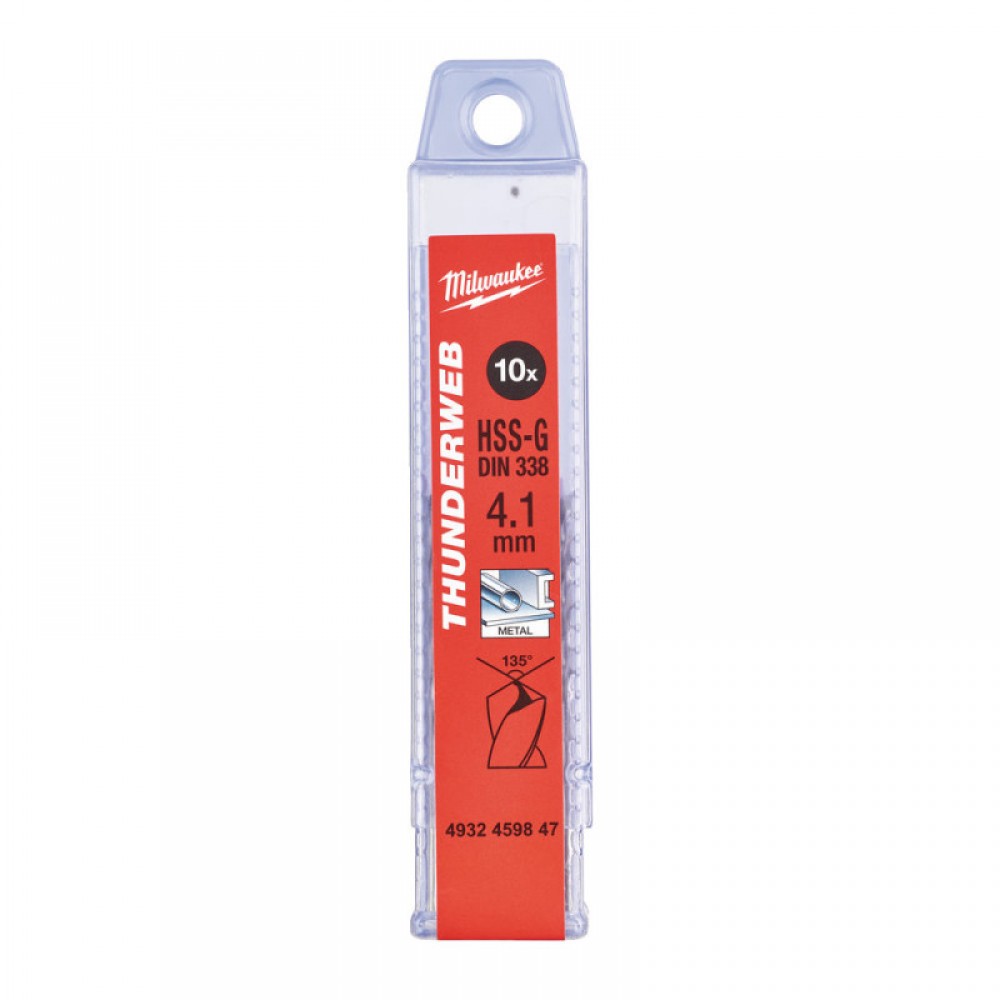 Свердло по металу THUNDERWEB HSS-G MILWAUKEE, DIN338, Ø4,1х75х43мм, (10шт)