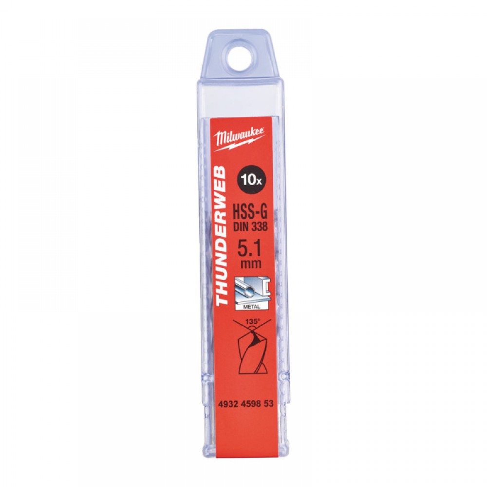 Свердло по металу THUNDERWEB HSS-G MILWAUKEE, DIN338, Ø5,1х86х52мм, (10шт)