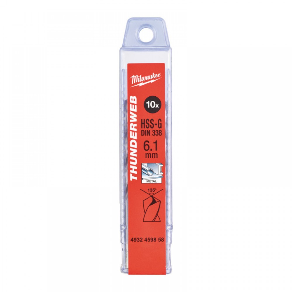 Свердло по металу THUNDERWEB HSS-G MILWAUKEE DIN338, діаметр 6,1х101х63мм, (10шт), пластикова коробка