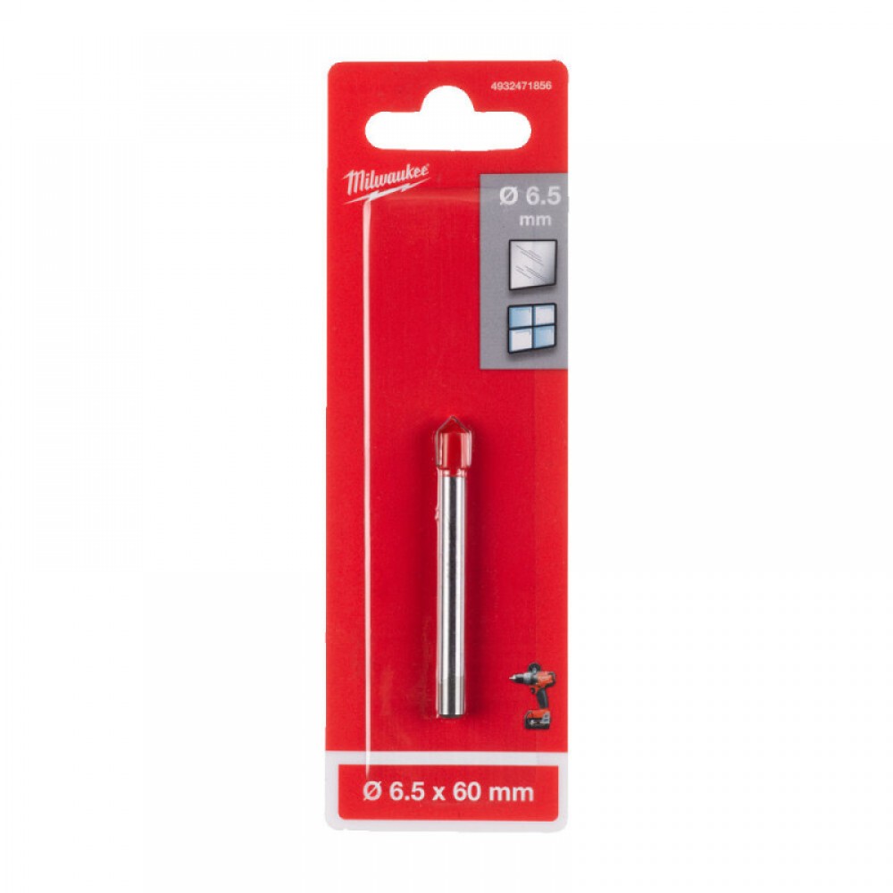 Свердло по склу та плитці GENII 6.5x60 (1 шт) Підходить для свердління в не каленому склі, м'якій та середній твердості плитки та кераміки. Ріжуча кромка із заточеного твердосплаву для швидкого свердління. Посилена конструкція робочої частини збільшення довговічності. Наконечник пофарбований у червоний колір. Починаючи з ⌀ 5 мм свердла оснащуються гранями на хвостовику для запобігання провертанню в патроні.