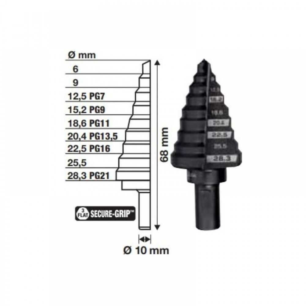 Свердло ступінчасте Step Drill MILWAUKEE, для електриків PG7-PG21 з кроком 2мм