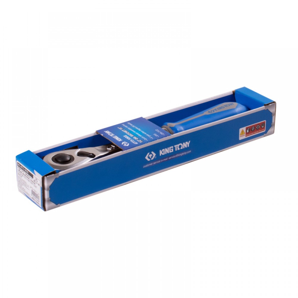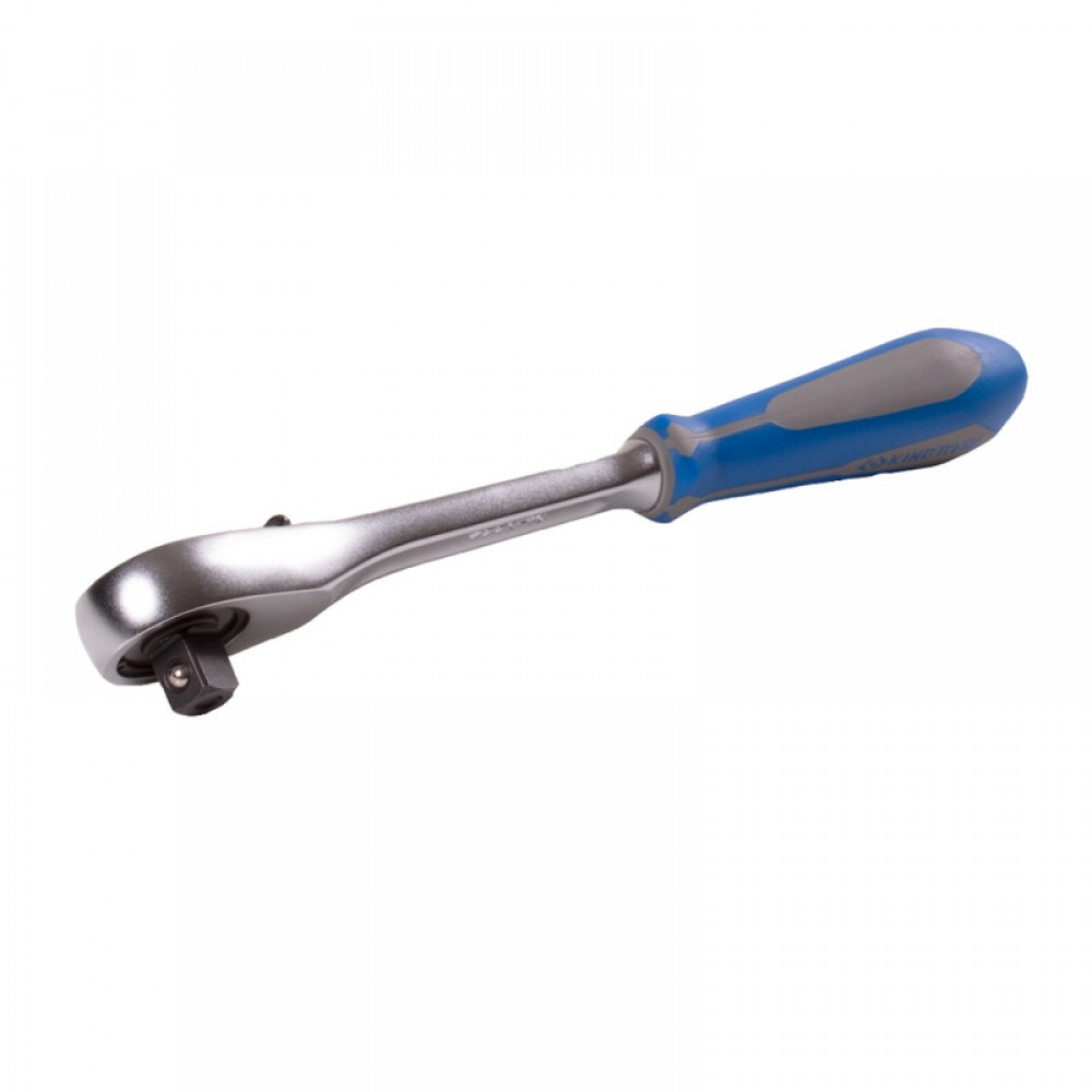 Призначена для роботи спільно з торцевими головками, які приєднуються за допомогою посадкового квадрата для монтажу та демонтажу вузлів різних розмірів. Особливості • Тримачковий механізм ключа дозволить працювати їм не відриваючи від деталі, що закручується. • Двокомпонентна ергономічна рукоятка. • Має кнопку скидання. • Має прапорець реверсу. • 90 зубців, кут повороту лише 4°. Технічні характеристики: Посадковий квадрат 1/2" Кількість зубів 90 Довжина, мм 250 Вага, кг 0,500