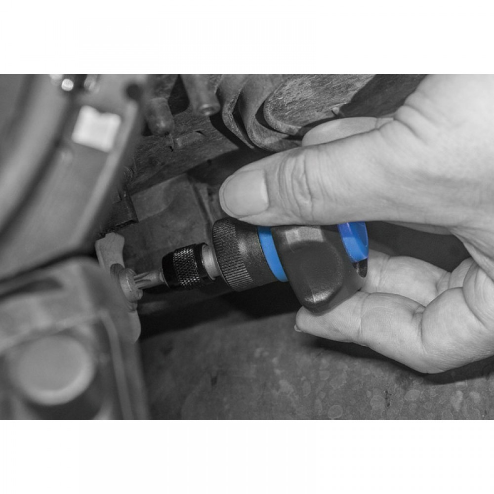Укорочена рукоятка у вигляді краника ідеально лягає у долоню будь-якому майстрові. Завдяки об'ємній головці інструменту значно простіше передавати момент, що крутить, елементу кріплення. Наявність тріскачки полегшує роботу з інструментом. Ще одна перевага - це шарнірний механізм, який дозволяє відхилятися голівці від кріплення на 15 градусів по осі біти.