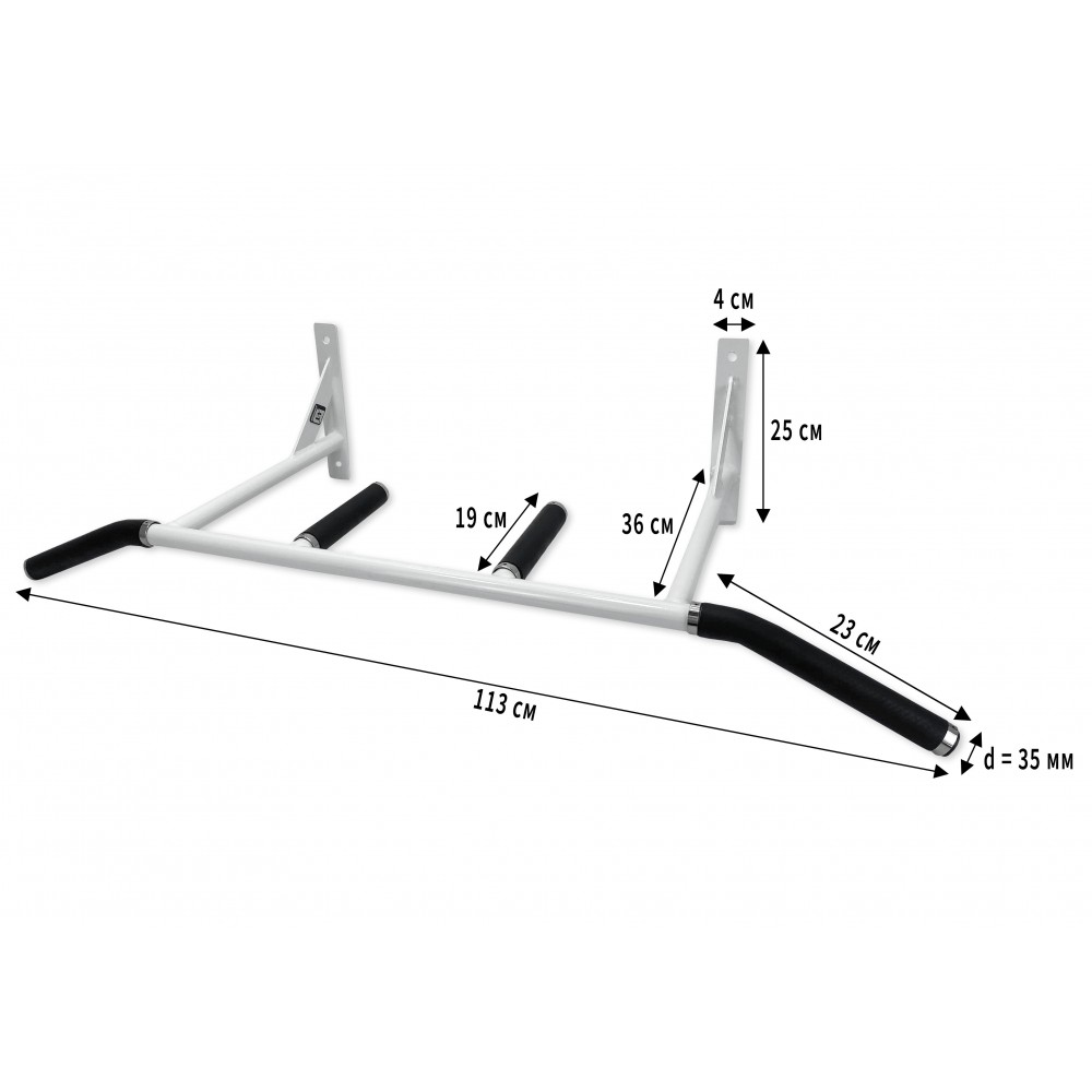 Сучасний дизайн із хромованими вставками підкреслює естетику зовнішнього вигляду турніка. Два кольори рами - чорний та білий підійдуть для більшості інтер'єрів.