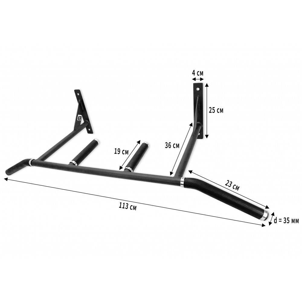 Анатомічно правильні вигини ручок під кутом 15град. забезпечують можливість хвата із шириною 85-103 см. Такі параметри дозволяють вибрати оптимальний хват виходячи зі зросту та довжини рук спортсмена; опрацювати найширші м'язи спини. Випробування навантаженням понад 450 кг показали стабільність конструкції та рекомендувати турнік не лише для домашнього, а й для комерційного використання. (відео-експеримент із 5 людьми)