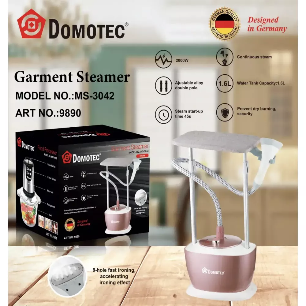 Відпарювач для одягу Domotec MS-3042 – це високопродуктивний пристрій, який швидко та ефективно розгладжує складки на одязі та текстилі. Завдяки потужності 2000 Вт він готовий до роботи всього за 45 секунд і забезпечує безперервний потік пари. Модель оснащена подвійною стійкою, що регулюється, містким резервуаром для води об'ємом 1,6 літра і системою захисту від перегріву.