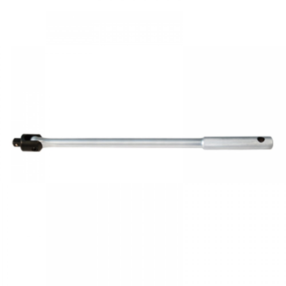 Вороток 1/2" з карданом 610мм - ручний інструмент, який служить приводом для торцевих головок. Пристосування використовується в автосервісі для відкручування або монтажу гайок і болтів. Особливість інструменту в наявності поворотного шарніра, який обертається в одній площині на 180 градусів. у роботі при обслуговуванні елементів кріплення у важкодоступних місцях вузлів та механізмів автомобіля. Подовжена рукоять інструменту використовується як важіль, що дозволяє підвищувати крутний момент, що передається торцевій головці. Приєднувальний квадрат обладнаний сферичним виступом, що гарантує найкраще зчеплення з насадкою. Шарнірний механізм коміра легко розбирається для сервісного обслуговування. Виробник: King Tony Країна виробник: Тайвань Тип інструменту: комір з карданом Посадка під торцеву головку: 1/2" Матеріал коміра: легована сталь (хром, ванадій) Оздоблення коміра: хромування, полірування. Загальна довжина коміра: 610 мм Вага: 1165 грам Кількість комірів із карданом в упаковці – 1, у ящику – 20 штук.