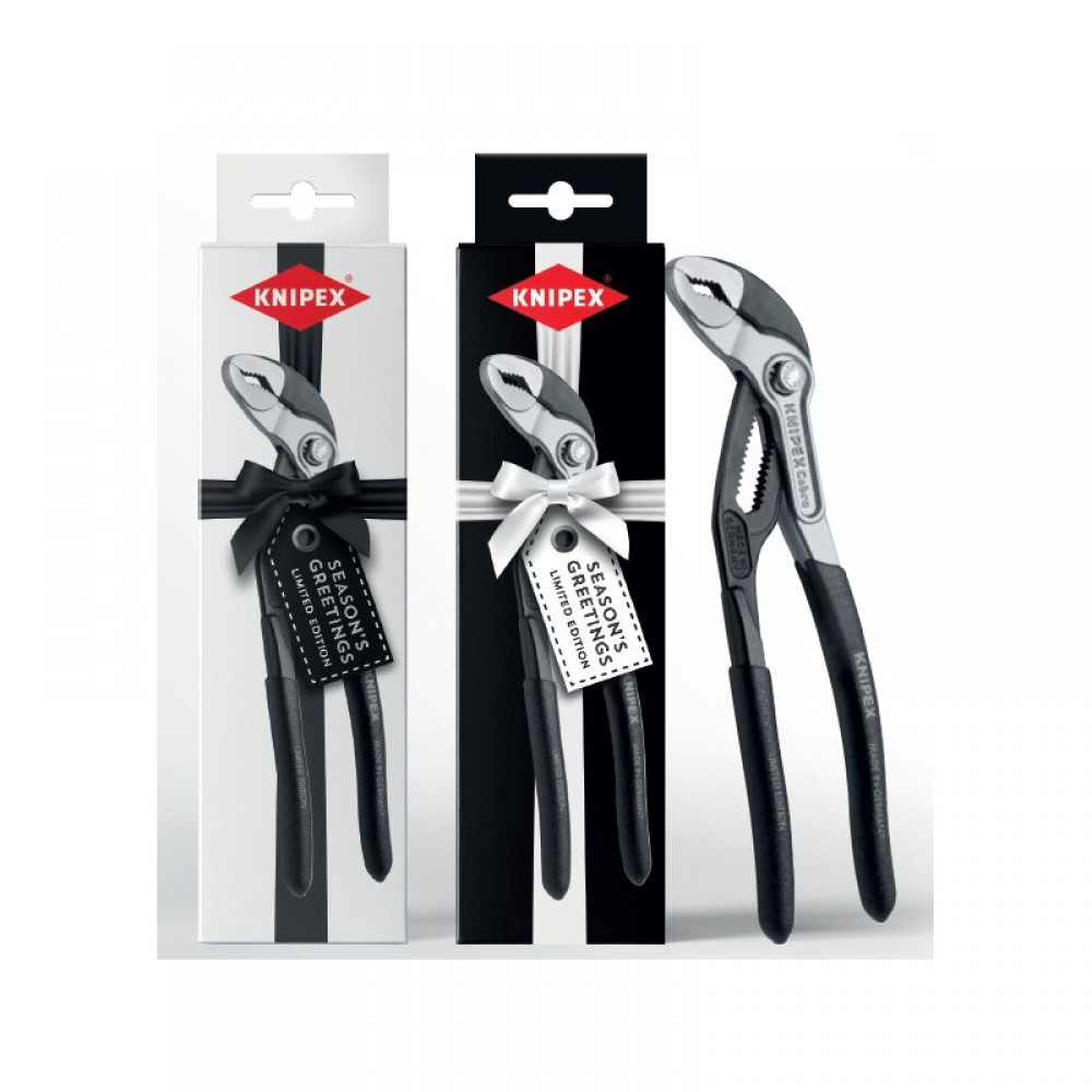 Кліщі сантехнічні KNIPEX- "Cobra" модель Hightech. Немає більше проблем з налаштуванням розчину губок. Замість цього: верхню губку кліщів устанавить на деталь, натиснути кнопку і присунути нижню губку. Геніально просто.