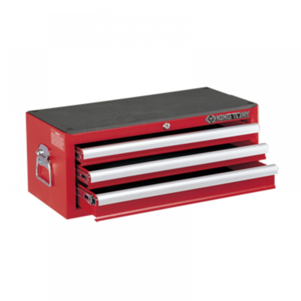 Ящик для інструментів 3 полиці King Tony (87421-3B) – це зручний та місткий комод для надійного зберігання ручного інструменту. Конструкція розрахована на професійне використання у виробництві та автосервісі. Така скринька вважається найкращим рішенням у плані надійності, довговічності та практичності, оскільки відповідає всім вимогам, що висуваються до систем зберігання слюсарного приладдя. Вигідно купити ящик для інструментів King Tony (87421-3B) Особливість конструкції в універсальності. У ящику можна легко зберігати оснащення, по необхідності транспортувати (є зручні ручки для перенесення). При необхідності верхня основа ящика може послужити робочим місцем для слюсаря. Все націлено на функціональність та комфорт. Конструкція виготовлена із товстих листів інструментальної сталі. Покриття – захисне, порошкове. Стільниця – полімерна пластина (товщина 10 мм). Три висувні ящики мають напрямні на шарикопідшипниках. Передбачена система центрального замку для надійного зберігання інструменту. Ящик антивандальний - без ключа, вилучити оснащення неможливо.