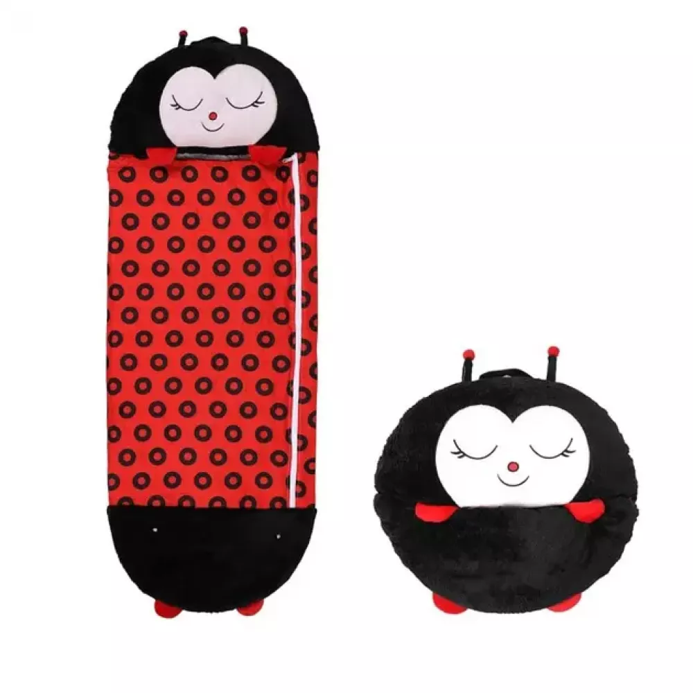 Дитячий спальний мішок на блискавці 3 в 1 Основні характеристики та переваги: Багатофункціональність: Може використовуватися як спальний мішок, розкладений як ковдра або згорнутий у формі м'якої іграшки у вигляді сонечка. Зручність та комфорт: М'який та приємний на дотик матеріал забезпечує комфортний сон та відпочинок. Яскравий дизайн: Привабливий дизайн у вигляді корівки з яскравими червоними квітами робить спальну сумку привабливою для дітей. Високоякісні матеріали забезпечують довговічність та стійкість до зносу. Практичність: Легко миється та йде в компактне зберігання, що робить його зручним для використання вдома або у поїздках. Спальний мішок  3в1 ідеально підходить для дітей та підлітків, які цінують комфорт і затишок під час відпочинку та сну. Він не тільки пропонує функціональність спального мішка, а й служить як затишна іграшка, додаючи радість та зручність у повсякденне життя малюків. Особливості: Happy Nappers – це затишні та практичні спальні мішки, які не тільки забезпечують комфортний сон, а й служать кумедними м'якими іграшками. Ці мішки мають яскравий дизайн у формі милих тварин, таких як сонечко. Виготовлені з високоякісного плюшу, вони подарують вашій дитині затишок та радість. Особливість Happy Nappers полягає в їхній універсальності. Граючи з цією великою іграшкою, діти можуть легко перетворити її на зручний спальний мішок із вбудованою подушкою і, навпаки, скласти його назад у іграшку. Це робить Happy Nappers ідеальним для використання вдома та у подорожах. Комбінуючи функціональність та розвагу, ці спальні мішки створюють затишне місце для відпочинку та ігор, стимулюючи уяву дітей. Їх привабливий дизайн та практичність роблять Happy Nappers чудовим вибором для дітей різного віку. Переваги: Happy Nappers – це не тільки милі іграшки, але й зручні спальні мішки, які приносять радість та комфорт вашій дитині. Вони виготовлені з якісного плюшу, роблячи їх м'якими та приємними на дотик. Ці багатозадачні спальні мішки можуть служити як плюшевою іграшкою, так і затишним місцем для сну. Happy Nappers легко трансформуються з іграшки в спальний мішок і навпаки. Їх зручно розстібати та складати, а для додаткової безпеки використовуються пластикові кліпси та блискавка. Це дозволяє легко підготувати мішок до сну або перетворити його назад на забавну іграшку. Ці спальні мішки також зручні у догляді. Вони можуть бути легко стираються в машині, забезпечуючи простоту та зручність у підтримці чистоти. Таким чином, Happy Nappers є практичним і розважальним рішенням для дітей, підтримуючи комфортний сон і веселі моменти ігор. У розкладеному вигляді спальне місце: 110 х 45 x 10 см
