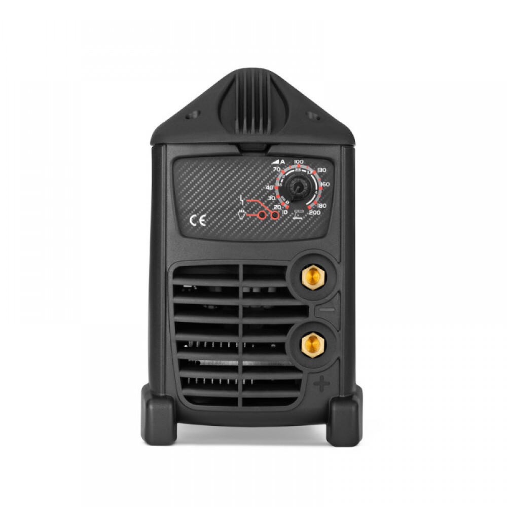 Інверторний зварювальний апарат з електродами ММА постійного струму (DC), 200А. Поставляється зі зварювальними приладдям і пластиковим футляром.