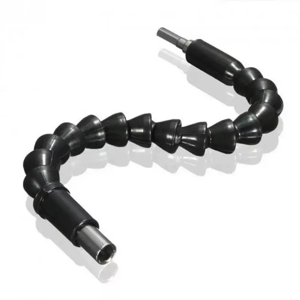 Гибкая удлинительная бита может использоваться как с уходящей в комплекте реверсивной отверткой, так и в качестве переходника для дрели. Закрепите биту на дрели или отвертке, наденьте соответствующую насадку и прогните удлинитель под нужным углом.