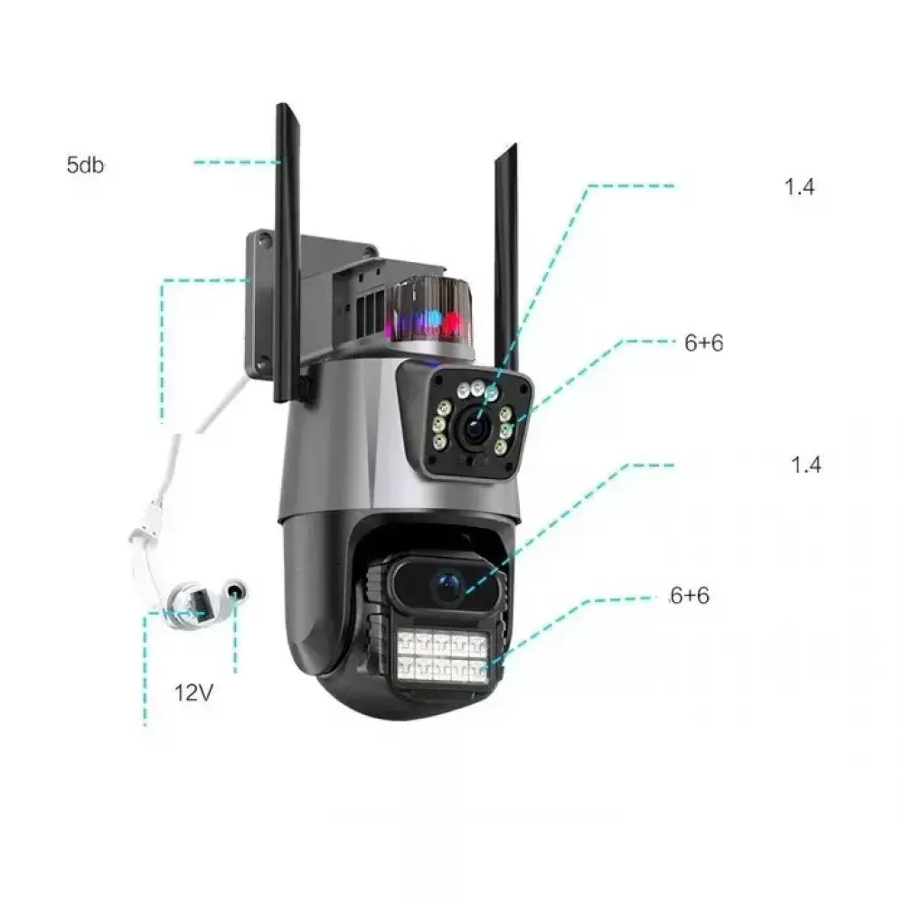 Вулична охоронна поворотна WIFI камера Dual Lens Zoom 8MP сирена, зум