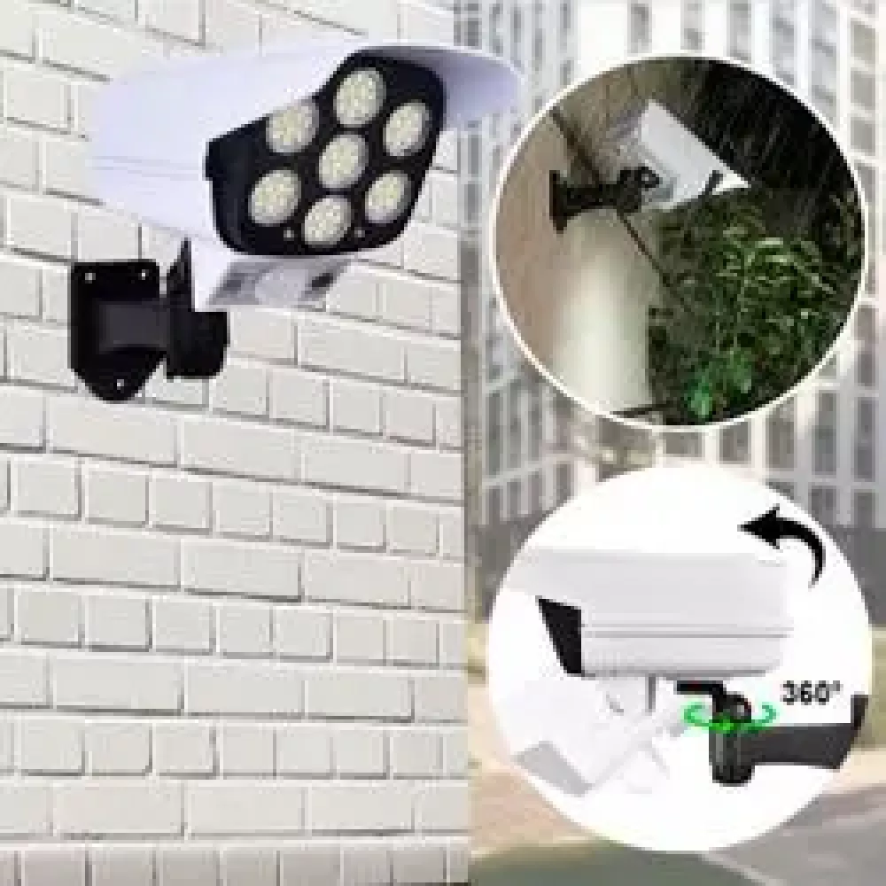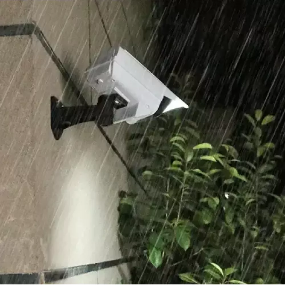Уличная камера муляж светильник с датчиком движения Solar Monitoring Lamp с дистанционным управлением очень удобное и экономичное приспособление. Встроенный датчик движения автоматически срабатывает при обнаружении движения на расстоянии от 3 до 5 метров. Беспроводной светильник муляж 2 в 1 идеально подходит для дачи, сада, двора, крыльца или подъездной дорожки. Вам не придется проводить электричество, камера муляж заряжается от солнечных батарей. Просто зафиксируйте устройство в подходящем месте и он готов к использованию. Уличный светильник работает от солнечных батарей в течение 8 часов.