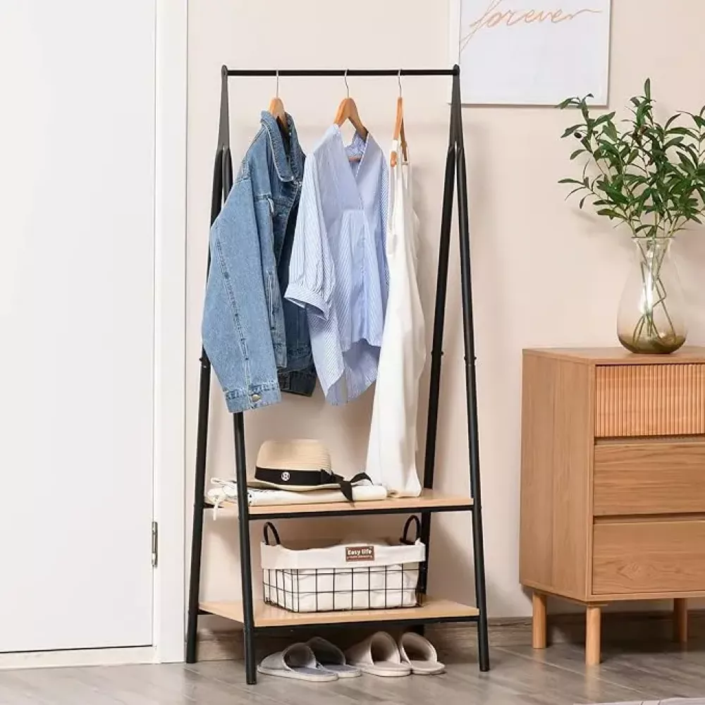 Прочная вешалка для одежды и вместительные полки для хранения