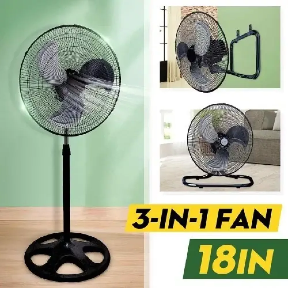 Вентилятор Wimpex WX-1807. 18". 3 в 1 напольный, настольный и настенный прекрасно сделает свою работу - спасать от жаркой жары! Он гарантирует непрерывность и качество своей функциональности! К тому же вентилятор дополнен режимом ― пониженным уровнем шума, теперь вы спокойно можете отдыхать, не беспокоясь сон!