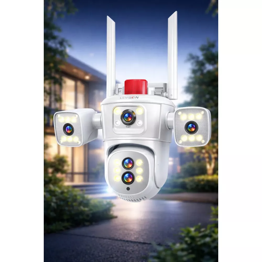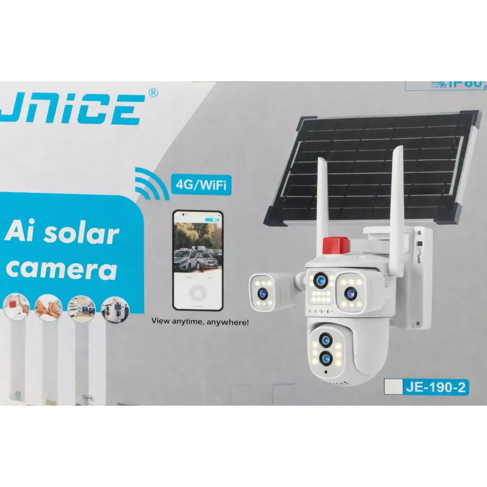 Видеокамера 4G IP66 4G 12mp (JE-190-2) 4 экранные 360-градусные камеры IP-камера четыре объектива Белая