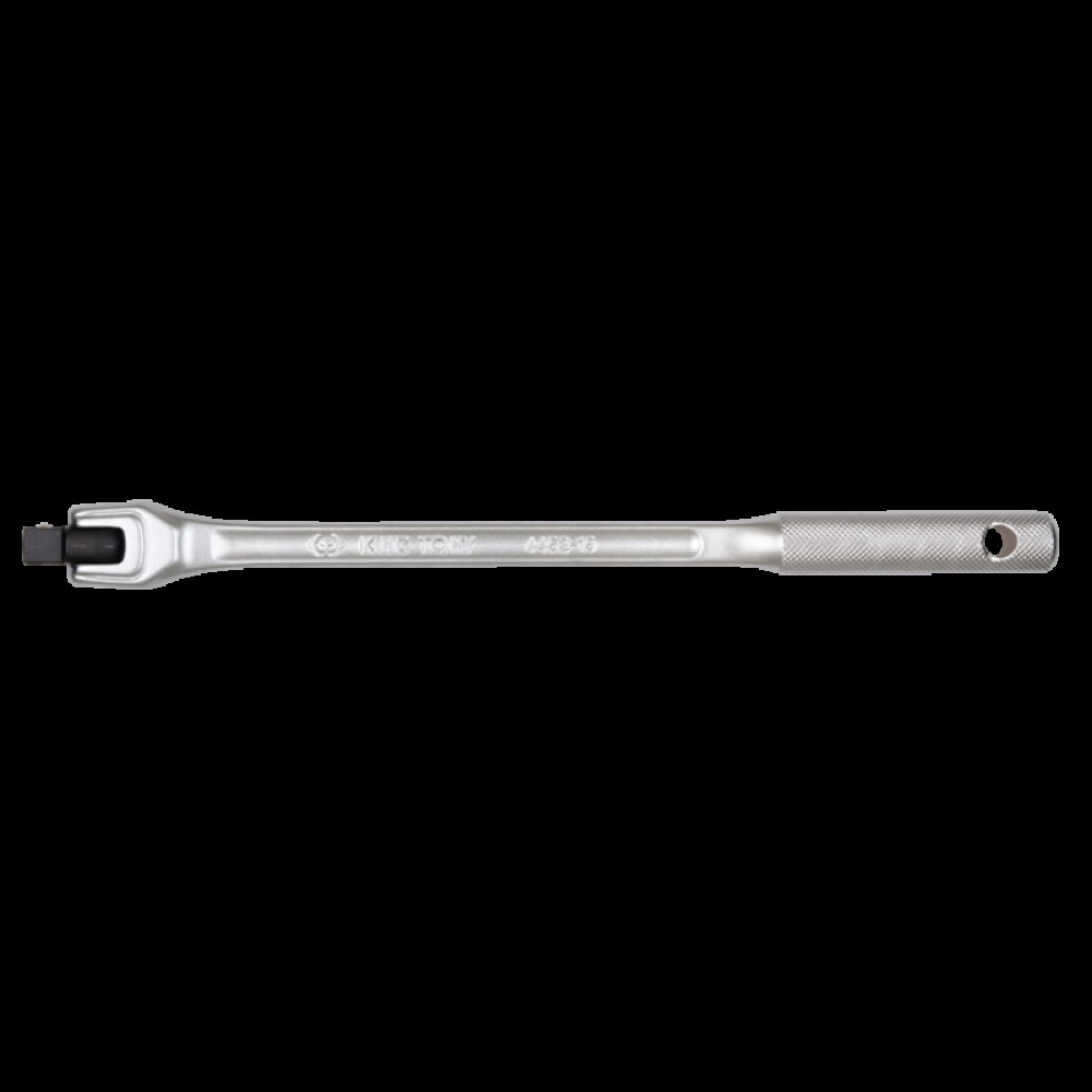 • Важіль рукояті коміра дозволяє прикладати значне зусилля; • Шарнірне з'єднання робочої головки дозволяє змінювати кут застосування навантаження, залежно від розташування та доступності кріпильного з'єднання; • Спеціальна насічка на рукоятці – для надійного утримання коміра під час роботи; • Приєднувальна головка (квадрат) має спеціальну кульку, призначену для фіксації головок та аксесуарів; • Відповідає стандарту якості DIN 3122. Технічні характеристики: Посадковий квадрат 1/2" Матеріали інструментальна сталь Cr-V, хром, оксидоване покриття Довжина, мм 450 Вага, кг 0,7