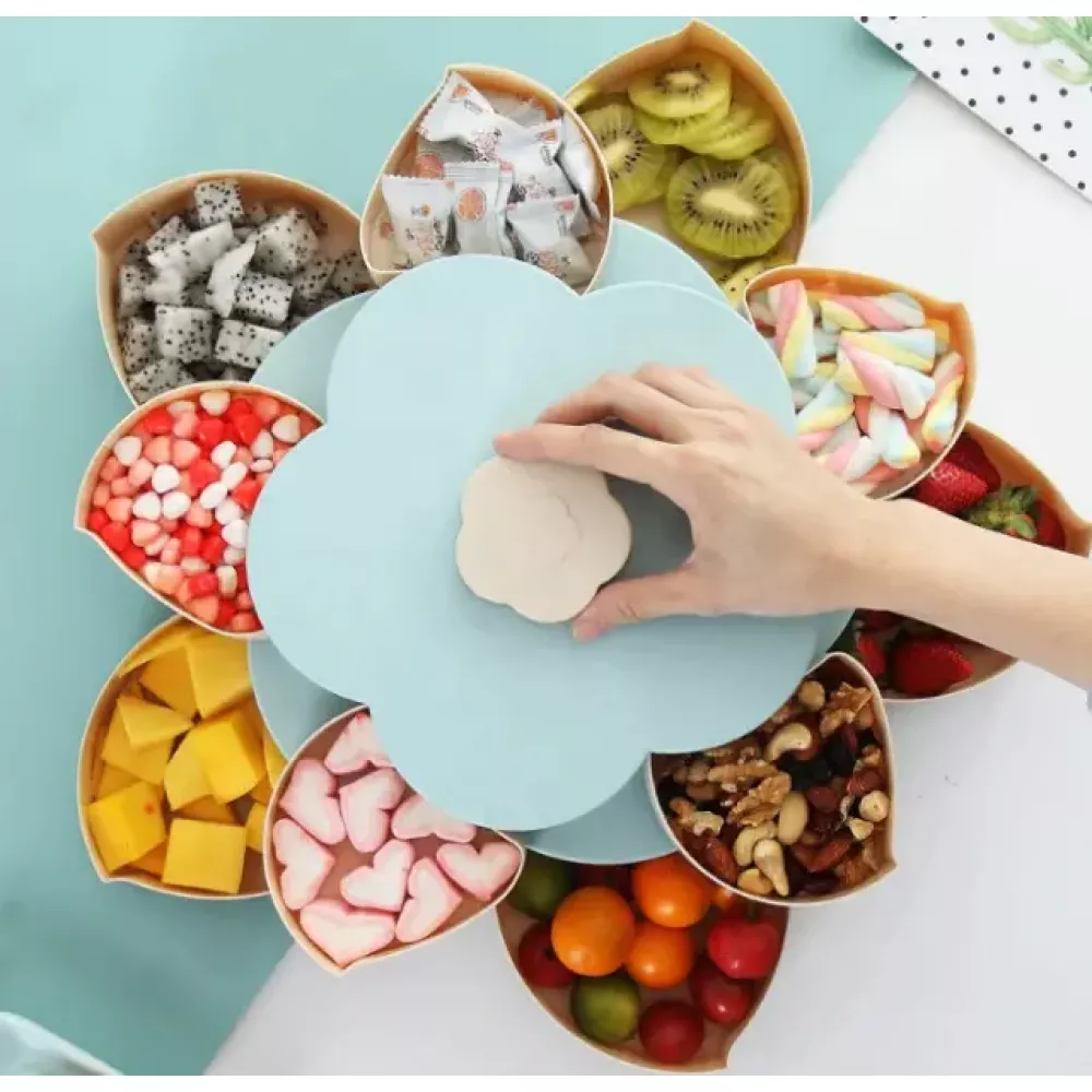 Вращающаяся складная двухъярусная конфетница SUNROZ Flower Candy Box для конфет и фруктов
