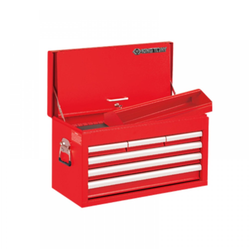 Ящик інструментальний, 6 ящиків та відсік, червоний King Tony (87411-6B) – це органайзер для автосервісу. Використовується для зберігання та транспортування слюсарного оснащення. Має попит у виробництві, будівництві та інших галузях, де потрібно зберегти цілісність ручного інструменту, убезпечивши від зовнішніх факторів. Вигідно купити інструментальний ящик King Tony (87411-6B) – краща ціна Місткість та мобільність конструкції виглядають дуже привабливо для споживача. Виготовлено ящик із листової легованої сталі. Покриття – захисне, порошкове. Є висувні полиці на шарикопідшипниках. За збереження інструменту відповідає центральний замок, який блокує відразу всі ящики (у закритому положенні). Для зручності транспортування інструментального ящика є навісні ручки з різних боків конструкції. До переваг можна додати розмір висувних полиць – вони виготовлені під ложементи EVA. Що дуже зручно, якщо в наявності є слюсарне оснащення в ложементах.