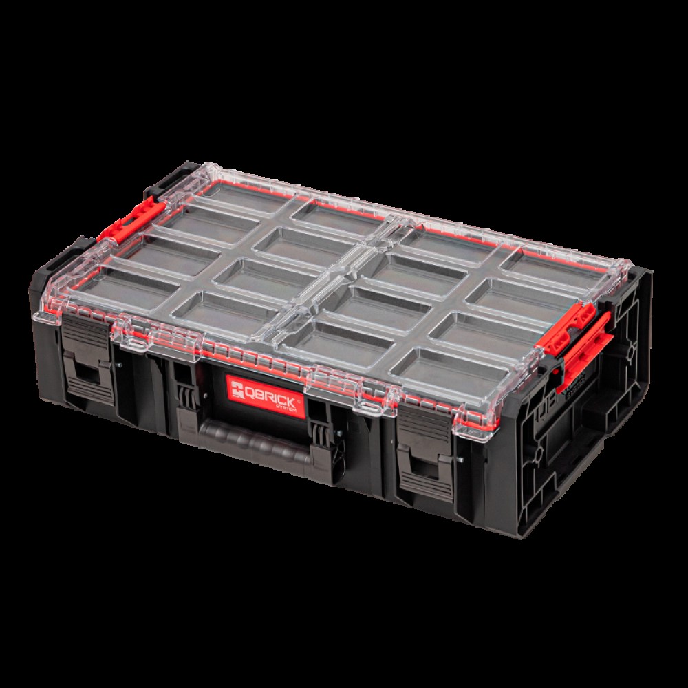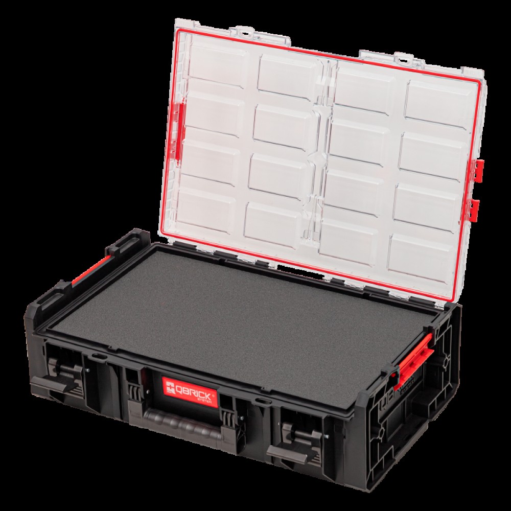 QBRICK SYSTEM ORGANIZER 2XL - MFI - это самая большая модель в семействе модульных органайзеров, которые можно комбинировать друг с другом, а также со всеми ящиками из линейки One. Органайзер 2XL оснащен 12 лотками двух универсальных размеров, а их содержимое защищено от воды и пыли гибким уплотнением.