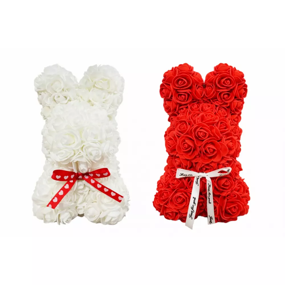 Зайчик из 3D роз в подарочной коробке KR-21 17/17/25см