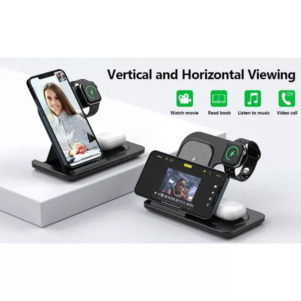 Зарядная станция 3в1 / Беспроводное зарядное устройство 3в1 для смартфона/смарт-часов/наушников