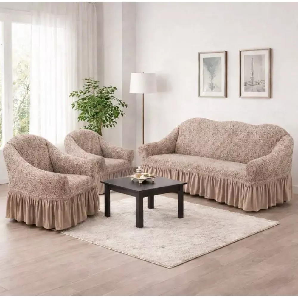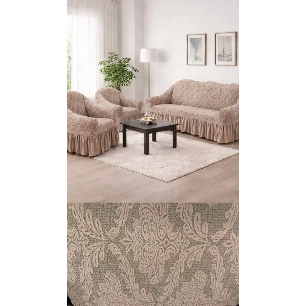 Жаккардовый турецкий чехол на диван и два кресла, универсальный натяжной чехол, накидка на диван Бежевый
