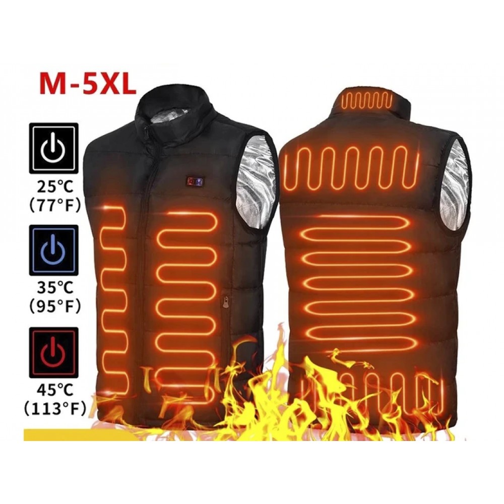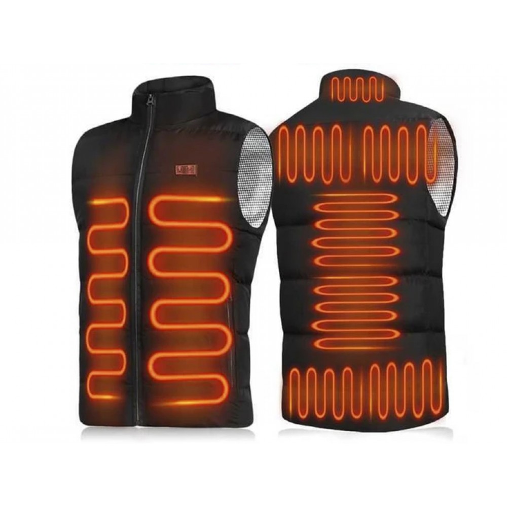 Жилетка с электроподогревом от павербанка 9 зон Размер 2XL Черный