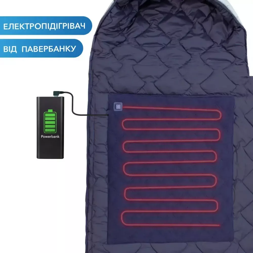 Зимний спальный мешок с подогревом USB 215*65, теплый спальник ковдра с подогревом до -30 синий
